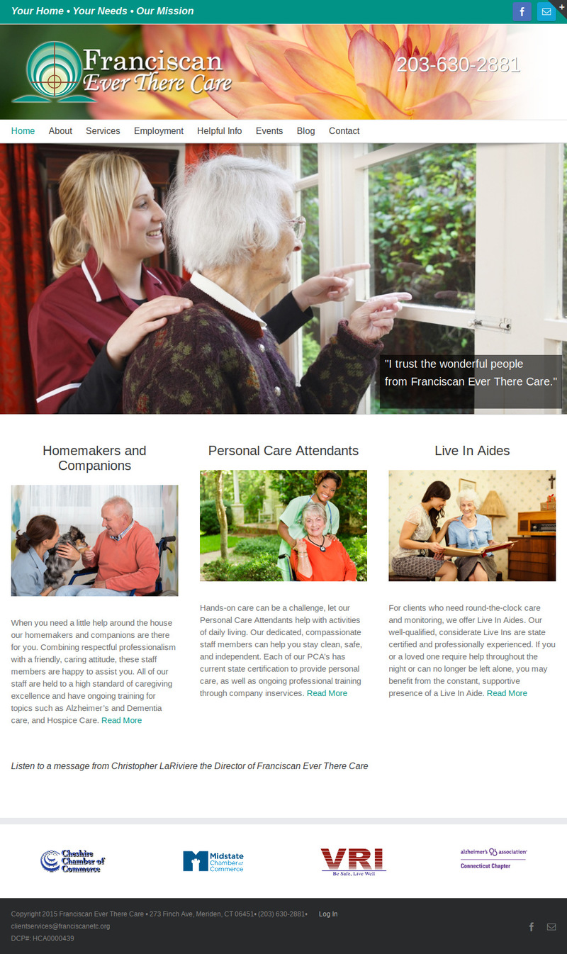 Franciscan Ever There Care, a growing agency serving the needs of many elderly persons in their homes in central Connecticut, is focusing on becoming more visible to adults seeking care for their elderly parents. In addition to basic information about their services, Franciscan Ever There Care’s site offers a form for persons to find out more about the agency.